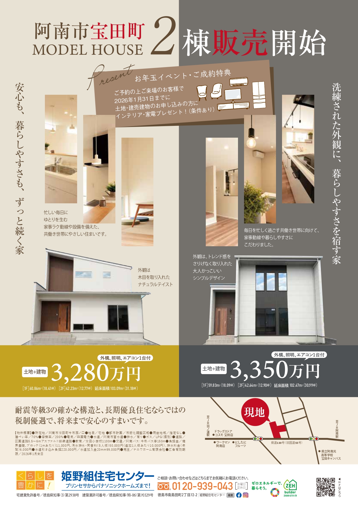 阿南市宝田町 建売デザインモデルハウス2棟 ご見学受付中!
